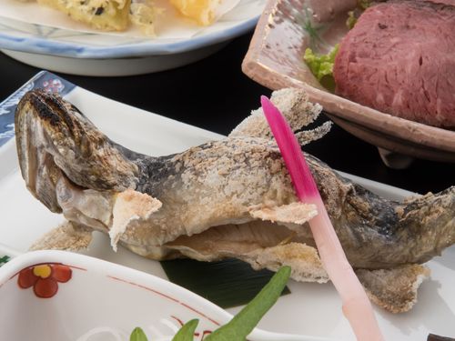 【夕食/イワナ塩焼き】ふっくらと焼き上げた岩魚の塩焼。
