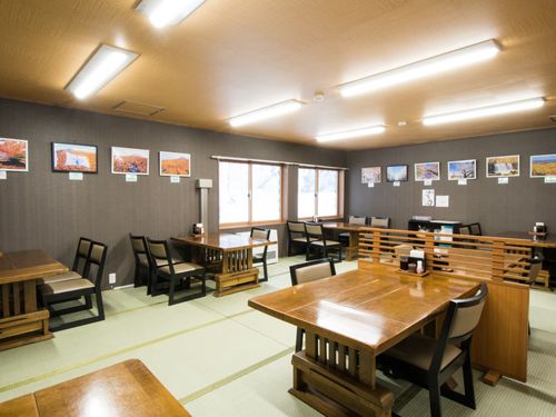 【食事処/ぶなしずく】畳の温かみを感じるテーブル席。