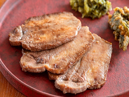 朝食:牛タン焼き・麦飯・とろろ