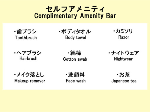 フロントにて歯ブラシ、剃刀、ボディタオルをご用意しております