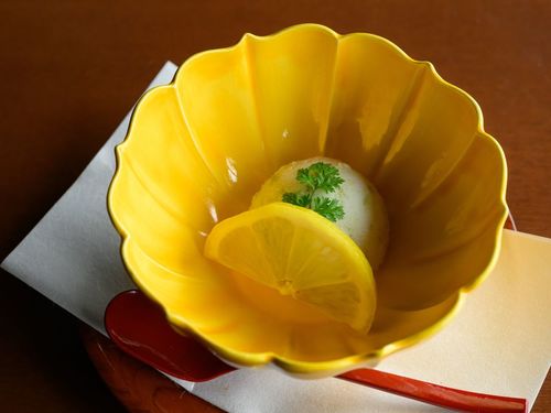 箸休めには伊香保の蕗の薹を使った特製シャーベットを。