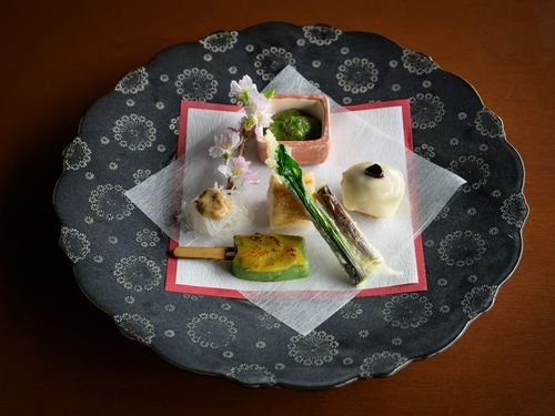 春の息吹を写す先付け。繊細なる先付の意匠。