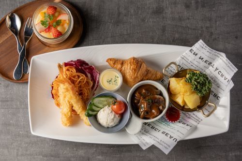 今昔を織り交ぜたアート空間でブッフェスタイルのご朝食。