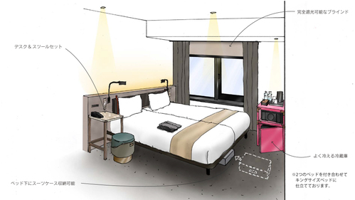 【コーナーダブル】18.8~19.3平米 ベッド幅160cm