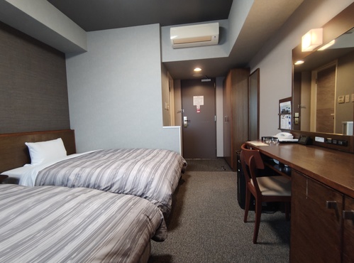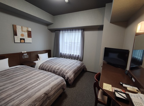 観光に最適なツインルーム。シンプルながら機能的な客室です。