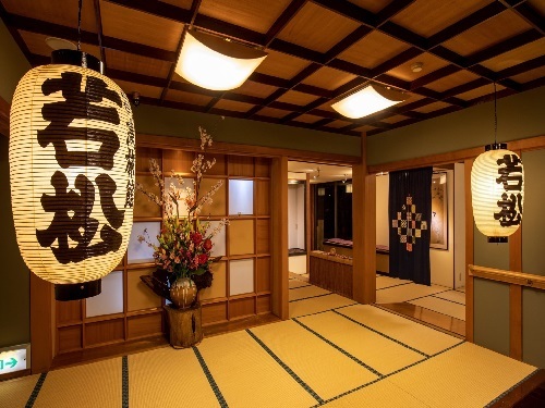 ☆エントランスは若松提灯が並び、お客様をお出迎えいたします。