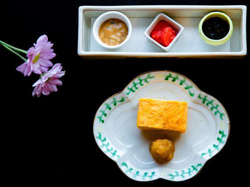 朝食(一例)焼きたての卵焼きは絶品!