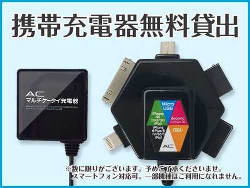 ◇マルチ携帯充電器◇貸出しございます。(※数量限定・先着順)