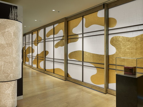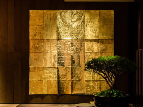 人が通ると揺れる、金箔のアートワーク