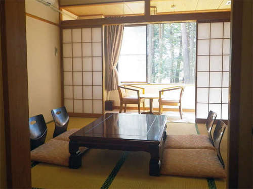 本館和室8畳一例 窓の外には広大な森林が広がっています