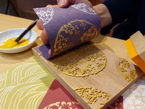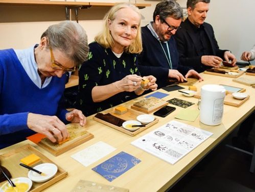 から紙 ミニ版木摺り体験中