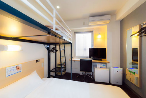 【スーパールーム】ワイドベッドにロフトベッド付 12平米