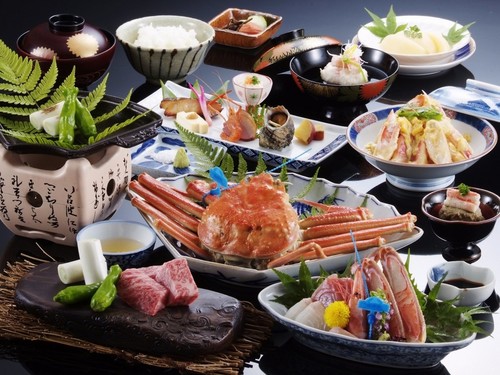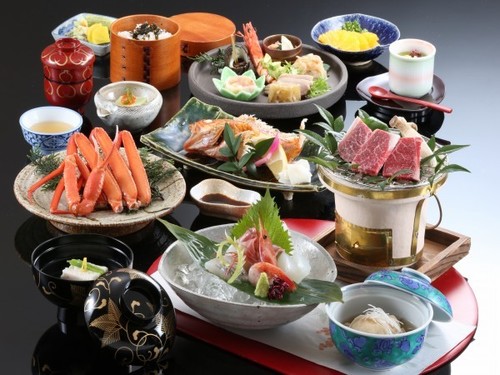 但馬牛付き季節の会席 一例(6~8月は紅がにの提供は無し)