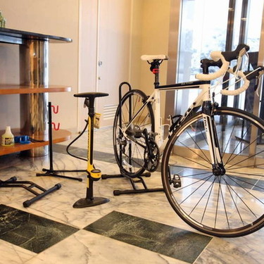 サイクリストには嬉しい♪スタンド、メンテナンス用具も完備!