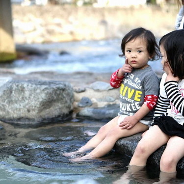 奥津温泉の足湯スポット。無料で誰でも入ることができます。