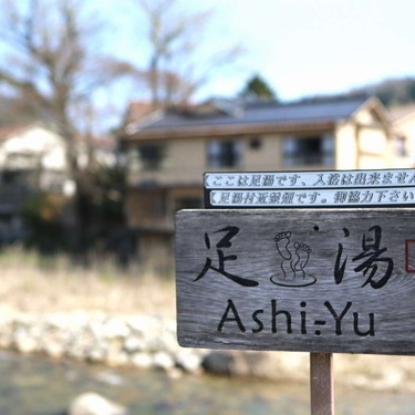 奥津温泉の吉井川沿いに足湯スポットがあります