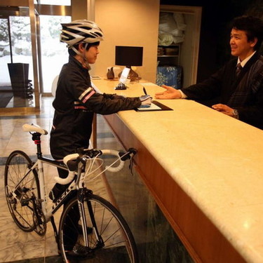 サイクリストは自転車に乗ったままチェックインOK!