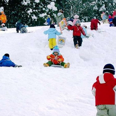 恩原高原スキー場のキッズパークでそり遊びができる!