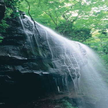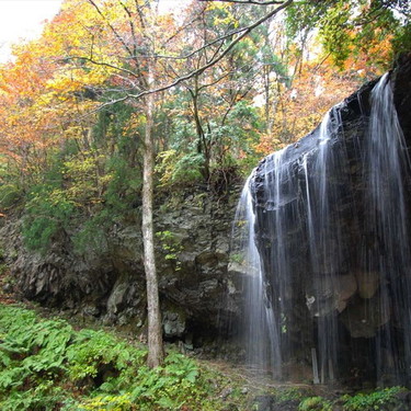 岩井滝。滝から100mふもとに湧き出る清水『岩井』