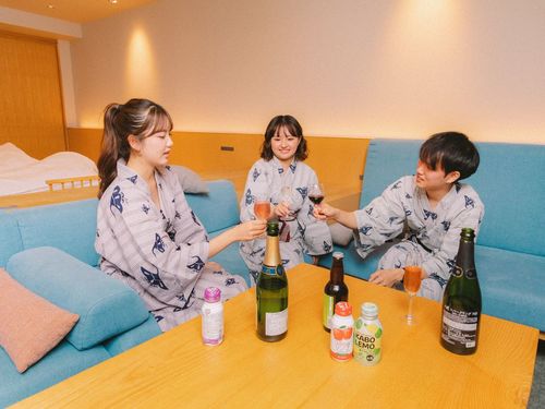 ◆過ごし方|仲間と語らう、寛ぎのひととき(飲み物はイメージ)
