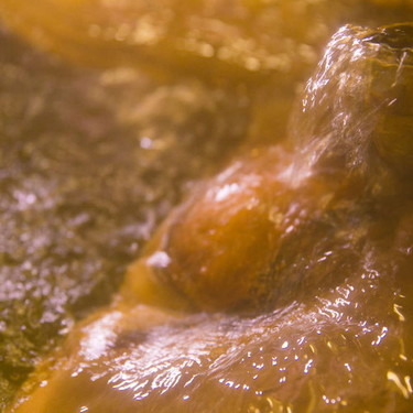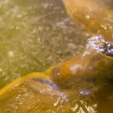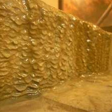 湯の花が堆積してできた層。源泉100%ピュアなお湯ならでは