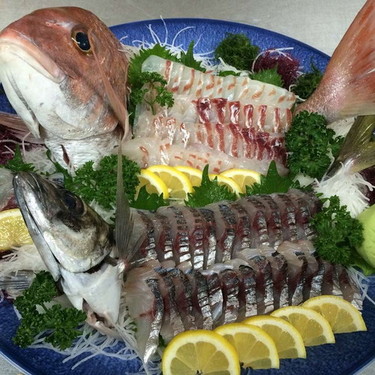 鯛と関アジのお造り(一例)