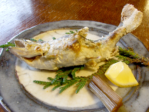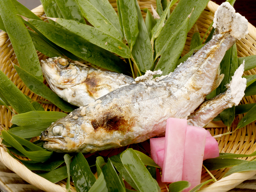 【夕食一例】ヤマメを塩焼きでどうぞ♪