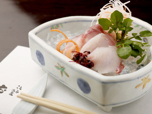 【夕食一例】お造りも新鮮なものを厳選し、お出ししております
