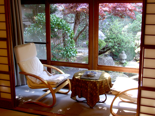 お部屋からは清流花合野川と庭園がご覧いただけます。