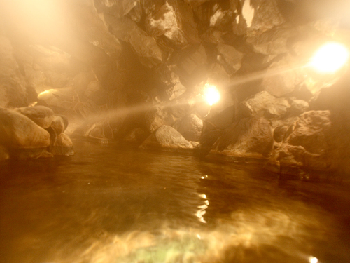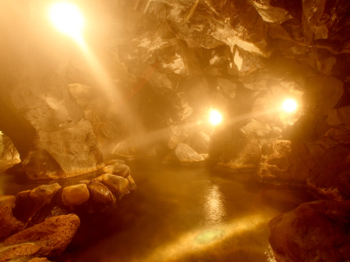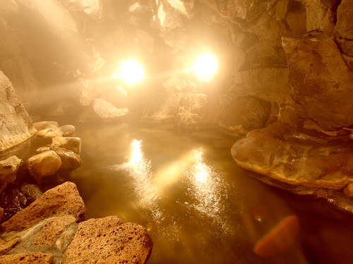 大洞窟風呂/ほのかな灯りと岩肌を伝い落ちる滴の音が神秘的です