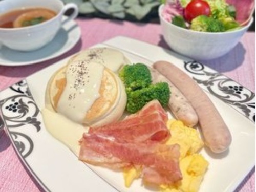 【cafeユーカラ|連泊2泊5食付き】「ソーセージとチーズのパンケーキ」付きプラン★朝・夕バイキング食★