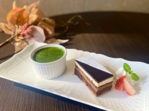 【カフェユーカラ|デザート付プラン】「抹茶ムース&チョコレートケーキセット」付/朝・夕バイキング食