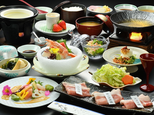 ■福島ブランド豚三種しゃぶしゃぶ膳■福島ブランド豚×自家源泉の露天風呂で温泉満喫!1泊2食付