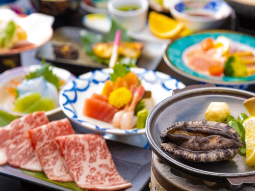 【きむらスペシャル会席◎高級食材満載で豪華な夕食を】上州牛、鮑や地元食材、新鮮なお造り盛り合わせなど