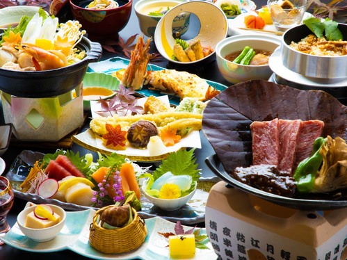 【きむらスペシャル会席◎高級食材満載で豪華な夕食を】上州牛、鮑や地元食材、新鮮なお造り盛り合わせなど