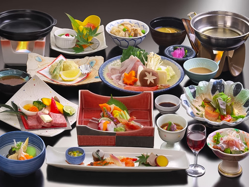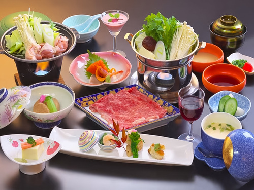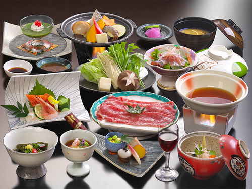 夕食は群馬のブランド牛「上州和牛」のメイン料理と月替りの和食膳