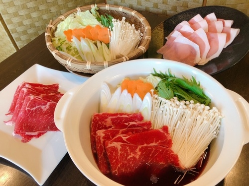 【スタンダード2食付きA】当館人気NO1★ 牛’ぶどう’すきしゃぶ+ハーフバイキング★90分食べ飲み放題