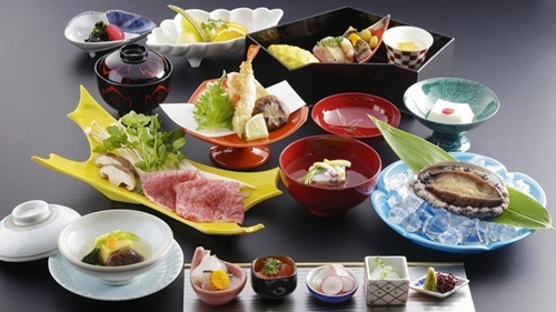 【特選味わい会席/料亭レストラン食】 贅沢グルメ!神戸牛+国産活黒あわび!