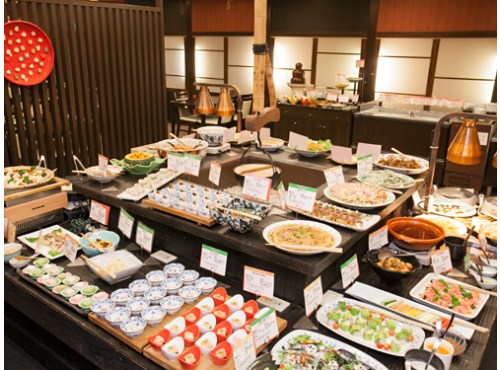 夕食は地元の食材をふんだんに使用した自慢の創作和食ビュッフェ