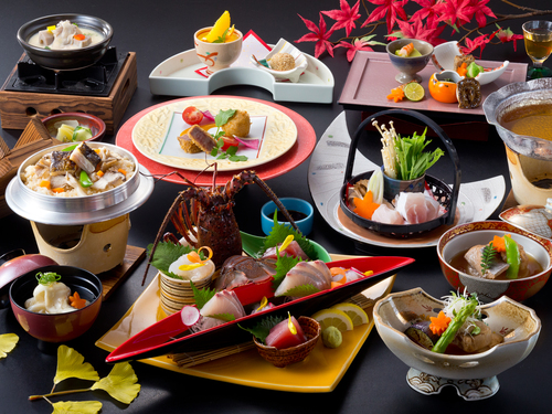 【グレードアップ/料理長厳選会席】伊勢海老姿造りと幻の魚クエを楽しむ!〈会場食/2食付〉