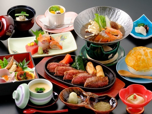 【ステーキ会席】☆国産牛ステーキがメイン☆ ~小鍋やパイシチューも付いてボリューム満点!~《翠玉フロアー》