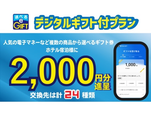 禁煙/朝食付【選べるe-GIFT】約24種類から選べるマルチギフトカード2000円分