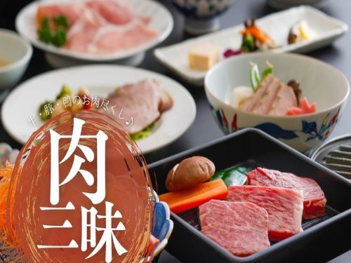 ◆お肉三昧会席◆「黒毛和牛あみ焼き×仙高ポークちり鍋×鴨のコンフィ」3種のお肉を贅沢に味わう